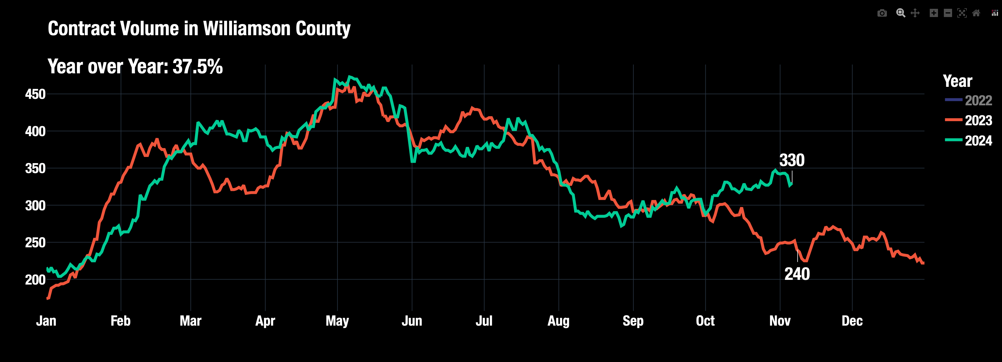 Forecast: Prices are stabilizing into November but will likely move up closer to $500K range, up another 2%. This is based on Contract Price hovering at $510K, and the median price tends to be $10-15K lower. Even though Price Cuts are higher than last year, they are trending down as a percentage of active listings.